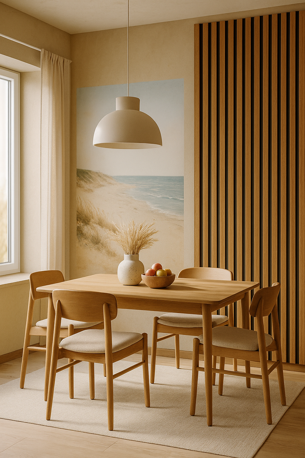 ✔️ Kuchyně / jídelna – kontrast se světlým nábytkem, dodává charakter.