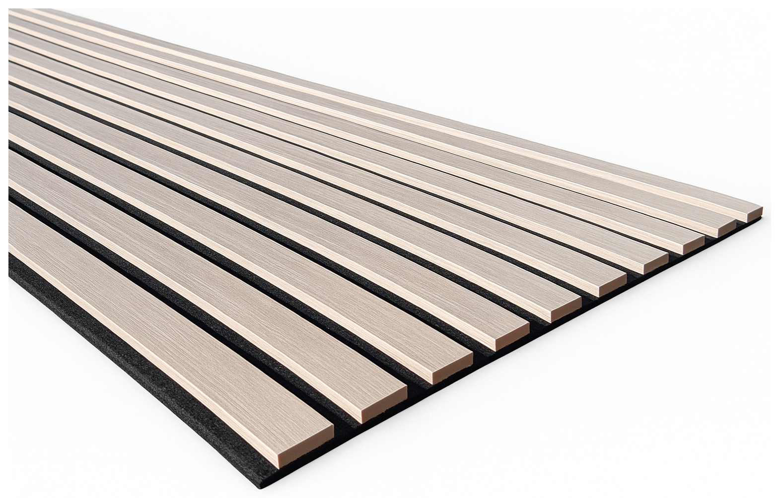 Lamel 3D – lamely na stěnu, akustické panely 46×255 cm na filcu, barva: Jasan ARKTICKÝ
