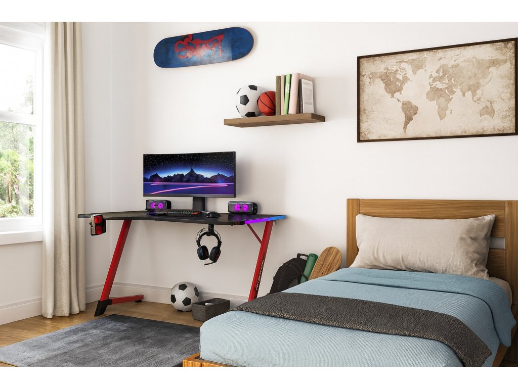 ✔️ Ideální do studentského pokoje – moderní vzhled, praktické držáky a ergonomie dělají z tohoto stolu ideální místo pro hraní i učení.