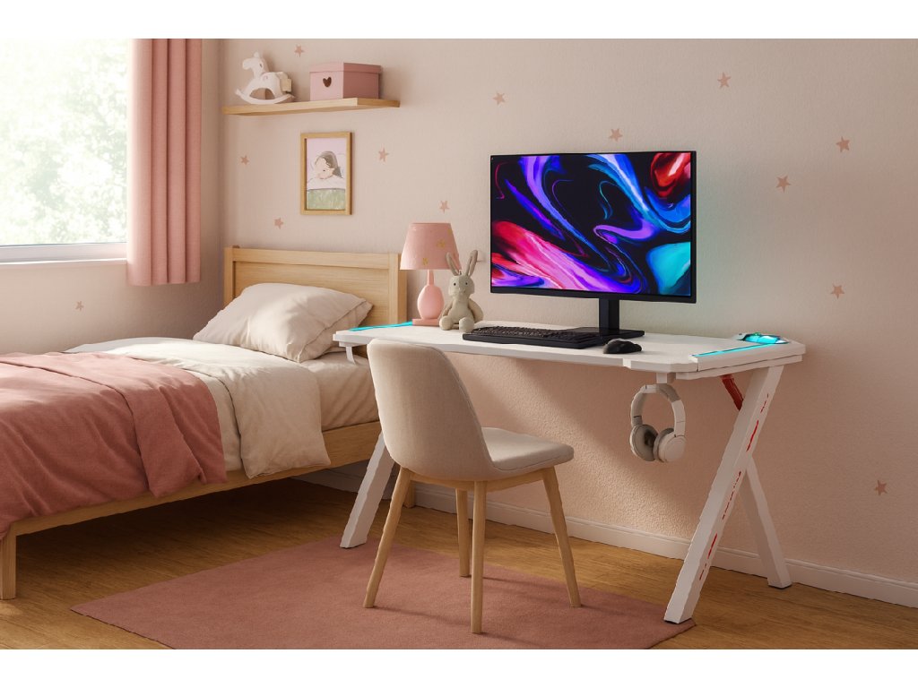 ✔️ Ideální do studentského pokoje – moderní vzhled, praktické držáky a ergonomie dělají z tohoto stolu ideální místo pro hraní i učení.