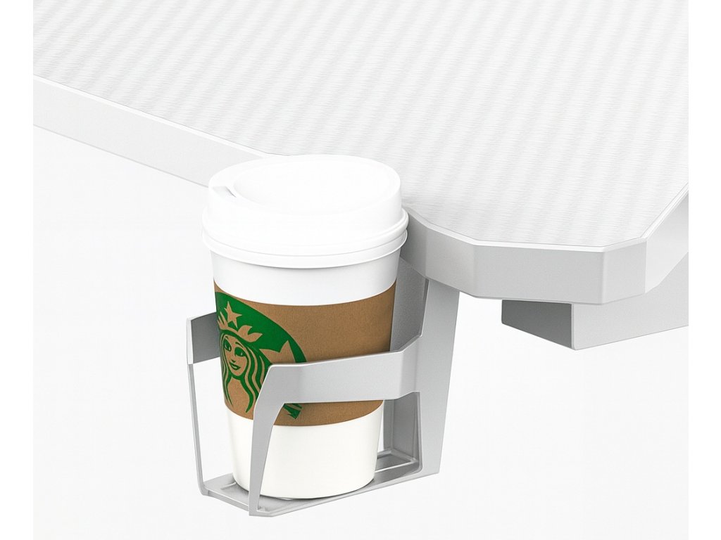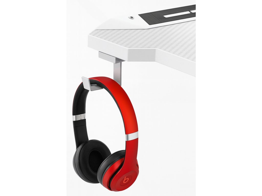 ✔️ Doplňky vždy po ruce – držák na sluchátka a nápoj pomáhají udržet pořádek a poskytují více prostoru na desce.