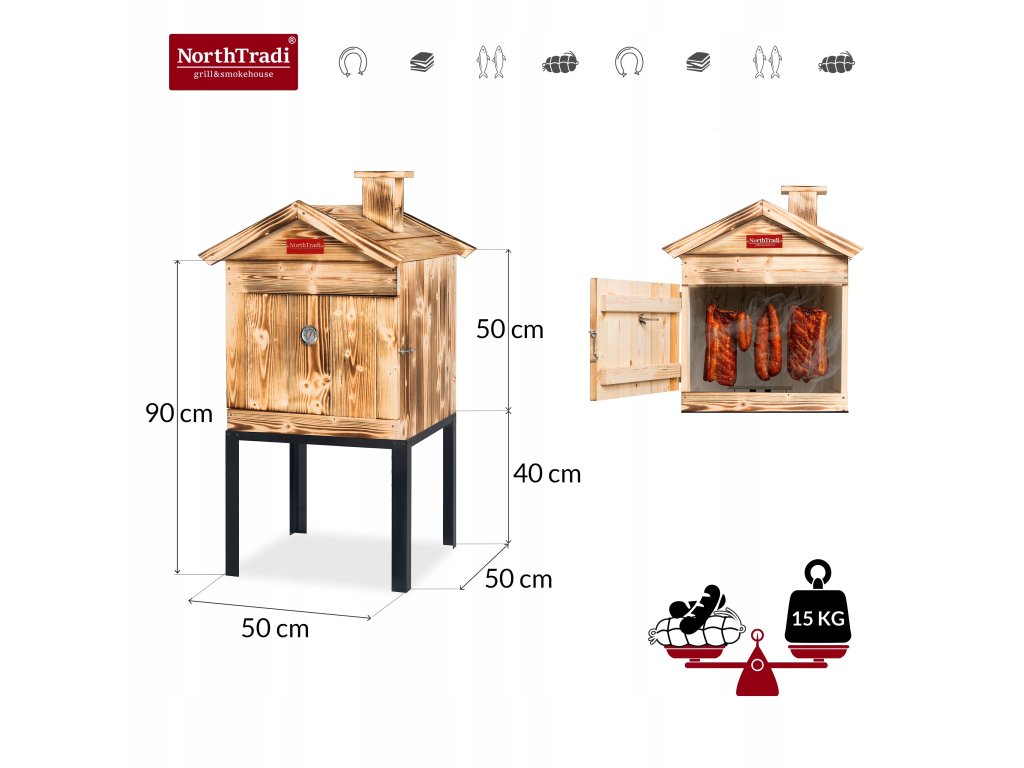 Objevte radost z domácího uzení s prémiovou udírnou NorthTradi Brann‑15‑DD‑KD‑L, která je připravena k použití ihned po vybalení.