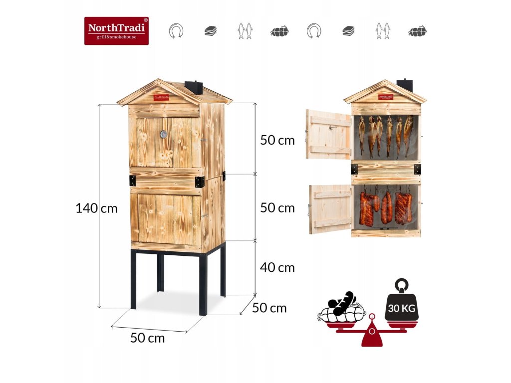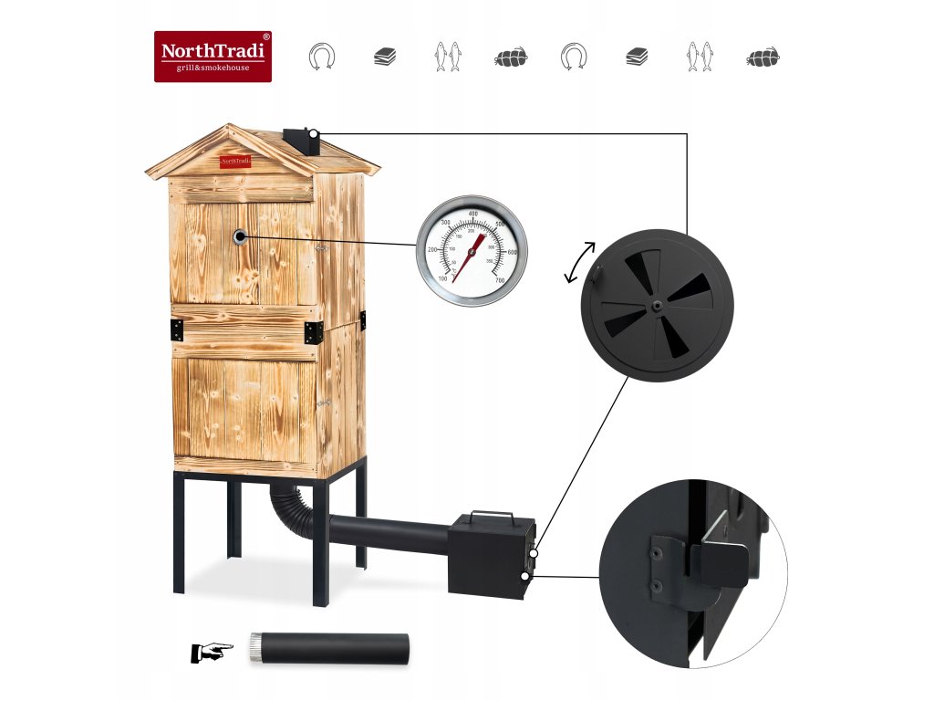 Objevte radost z domácího uzení s prémiovou udírnou NorthTradi Brann‑30‑DD‑KD‑L, která je připravena k použití ihned po vybalení.
