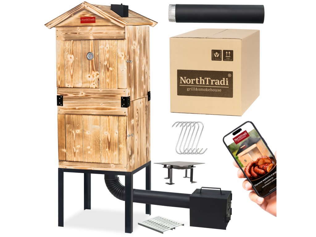 🔥🌲 Dřevěná zahradní udírna NorthTradi – dokonalá vůně a chuť domácího uzení