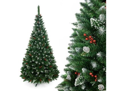 Třpytivá borovice s červenou jeřabinou – luxusní stromeček, který okouzlí na první pohled. Husté jehličí, lesk krystalů a sváteční kontrast bez nutnosti zdobení