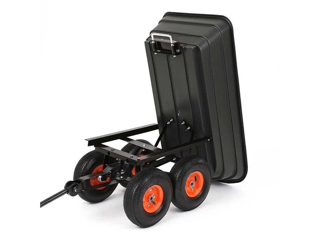 Protože je to skutečný univerzál na zahradu! Kombinuje 3 funkce v jednom: klasický vozík, kolečko a přívěs s výklopnou funkcí. Neocenitelný pomocník při zahradních, stavebních i transportních pracích.