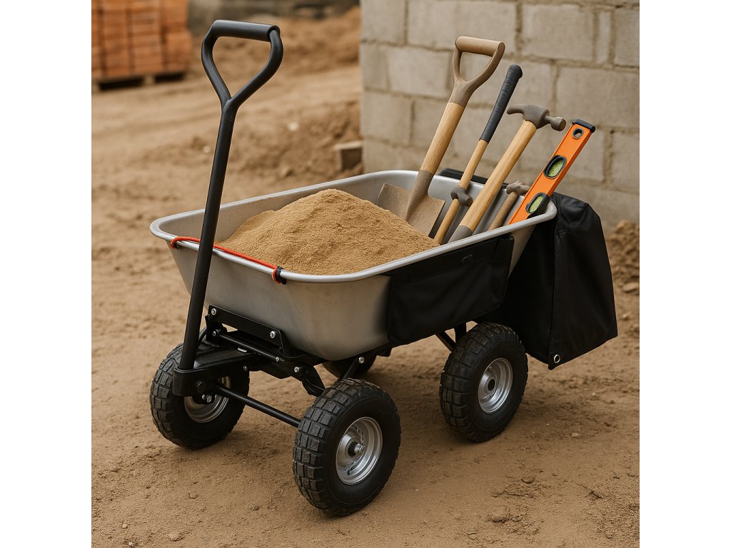Protože je to skutečný univerzál na zahradu! Spojuje 3 funkce v jednom: klasický vozík, kolečko a přívěs s výklopnou funkcí. Neocenitelný pomocník při zahradních, stavebních i transportních pracích.