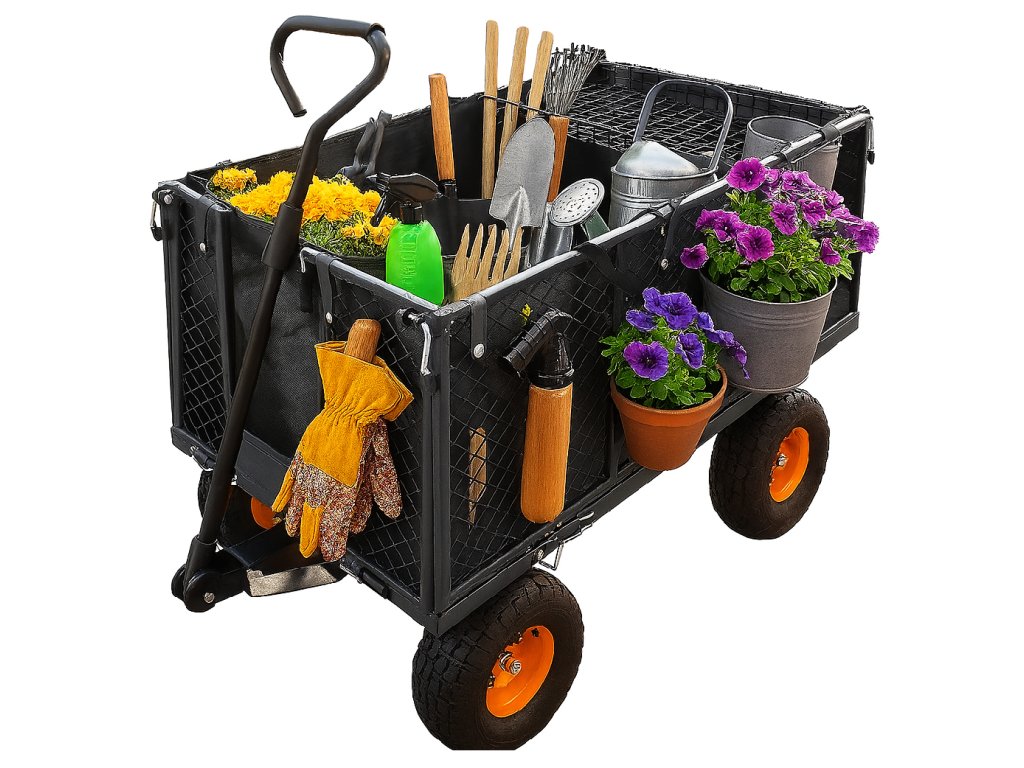✨ Zahradní vozík na nafukovacích kolech s tažnou rukojetí