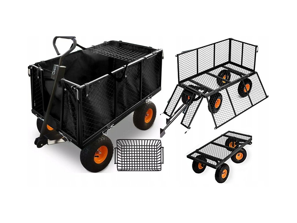 🛒 Zahradní vozík – transportní přívěs velký 220 L / 350 kg s bočnicemi 41 cm + DÁREK